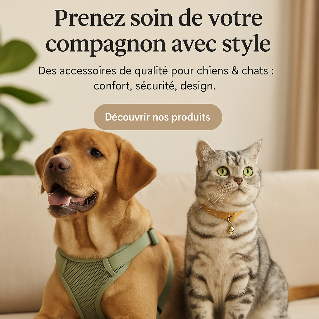 Notre mission : rendre la vie des chiens & chats plus confortable avec des accessoires utiles et stylés. Nos valeurs : qualité, simplicité, amour des animaux. Basé en France, service client à l’écoute.